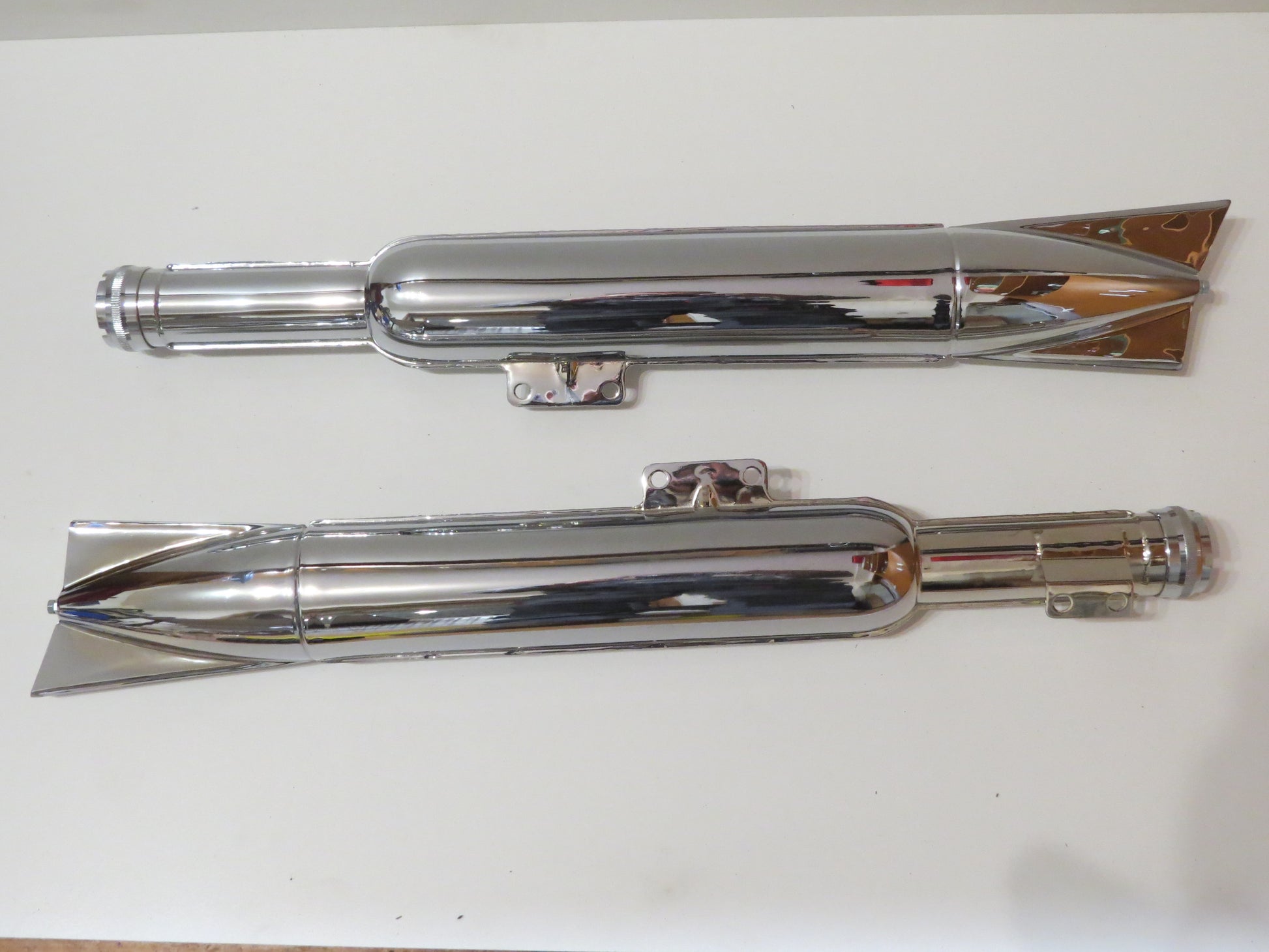 Chrómované výfuky rybiny určené pre motocykle Jawa 250 a 350 kývačka. Kvalitné spracovanie, presný tvar aj uchytenie.