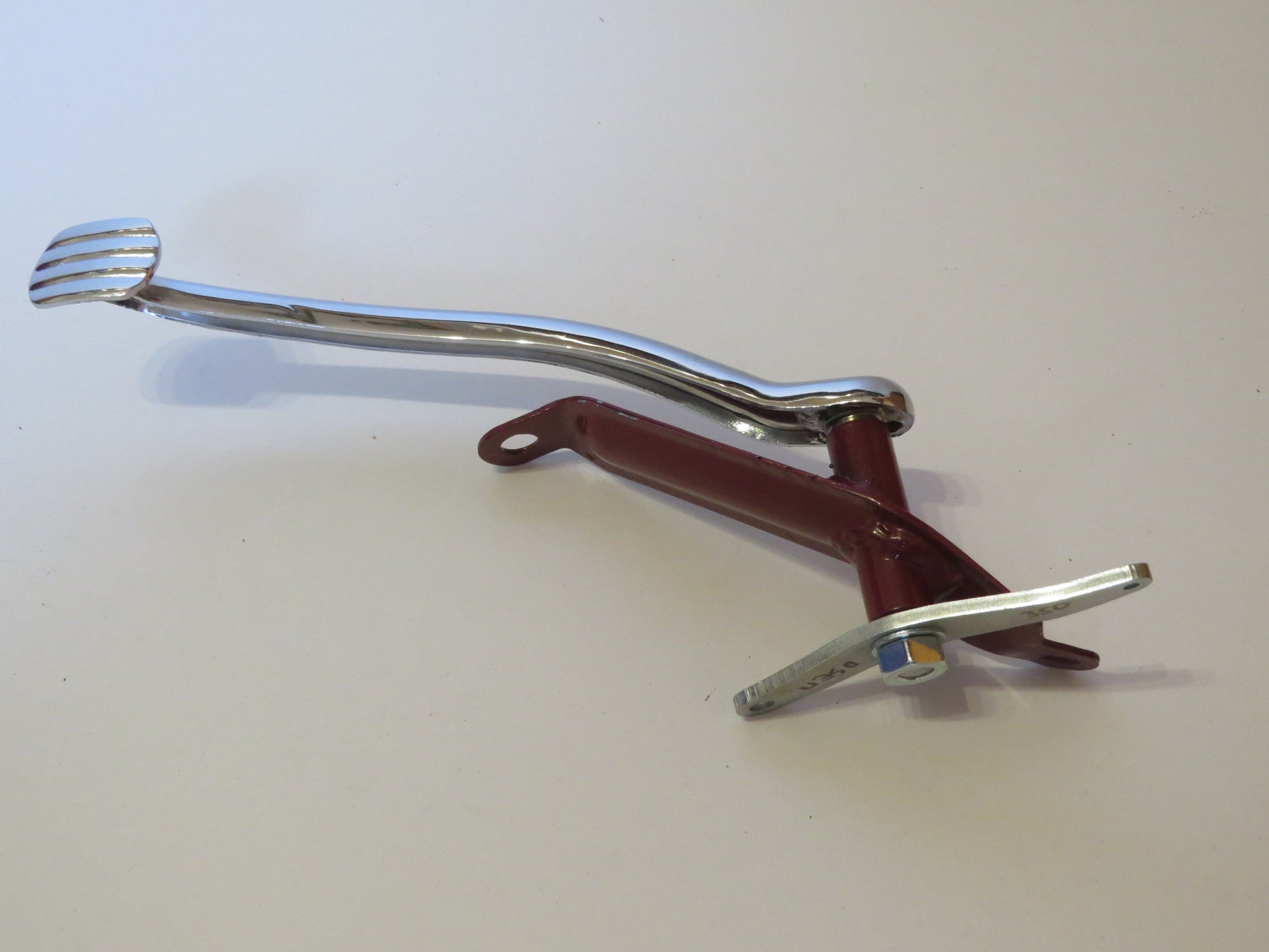 Páka nožnej brzdy na Jawa 350 kývačka panelka.Hriadel s tiahlom sú upevnené na osemhrane