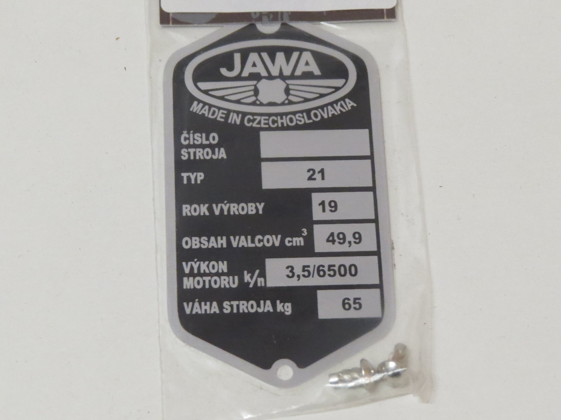 Výrobný štítok Jawa 21 pionier VS12